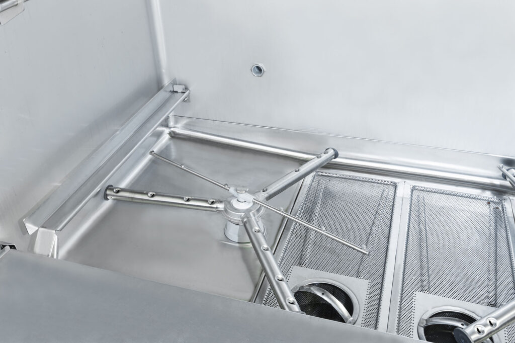 Dabei wird während des gesamten Spülzyklus kein kaltes Wasser zugeführt – ein entscheidender Vorteil für die thermische Desinfektion und HACCP-konforme Reinigung.
