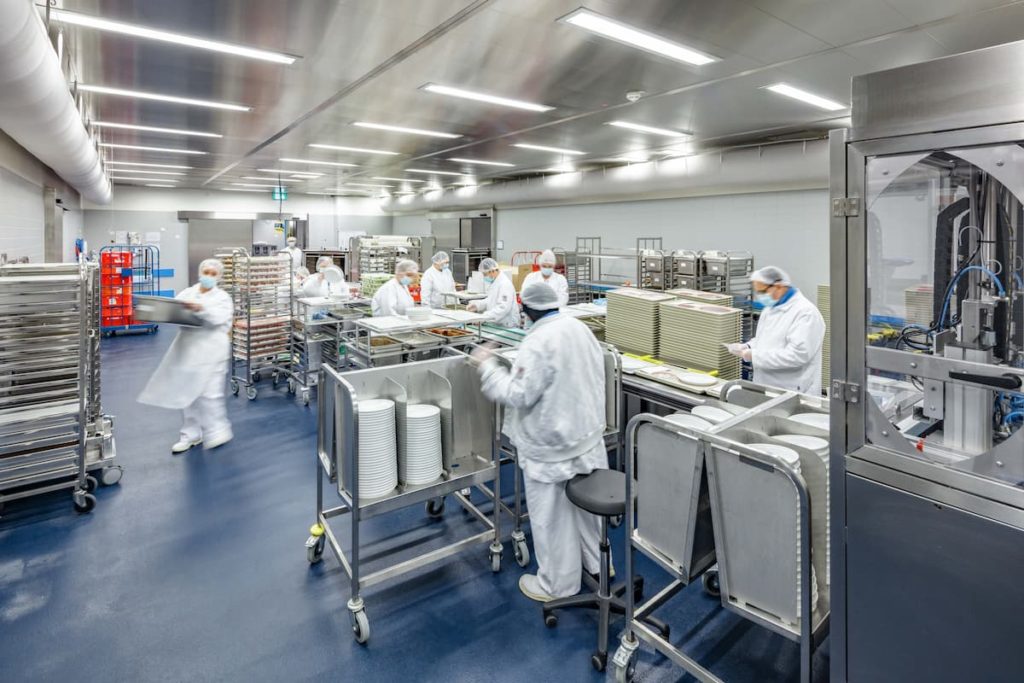 Das Universitätsklinikum Frankfurt am Main eröffnete im März 2020 das neue Gebäude „Haus 35“, in dem nun die Küche für die Patientenverpflegung untergebracht ist. Hier werden von der Abteilung Gastronomie und Veranstaltungsservice täglich rund 1400 Essen pro Mahlzeit im Cook & Chill-Verfahren für die Patientenverpflegung zubereitet und mittels 200 Speisenverteilwagen zum Gast ans Bett gebracht. Hinzu kommen maximal 900 Portionen in der Mitarbeiterverpflegung sowie rund 700 Zwischenmahlzeiten. „Im Normalbetrieb werden darüber hinaus auch sämtliche hausinterne Veranstaltungen vom Küchenteam becatert“, erklärt Marina Becker, stellvertretende Abteilungsleitung bei Gastronomie und Veranstaltungsservice. Auch hierfür kommen entsprechende Speisenverteilwagen zum Einsatz.
